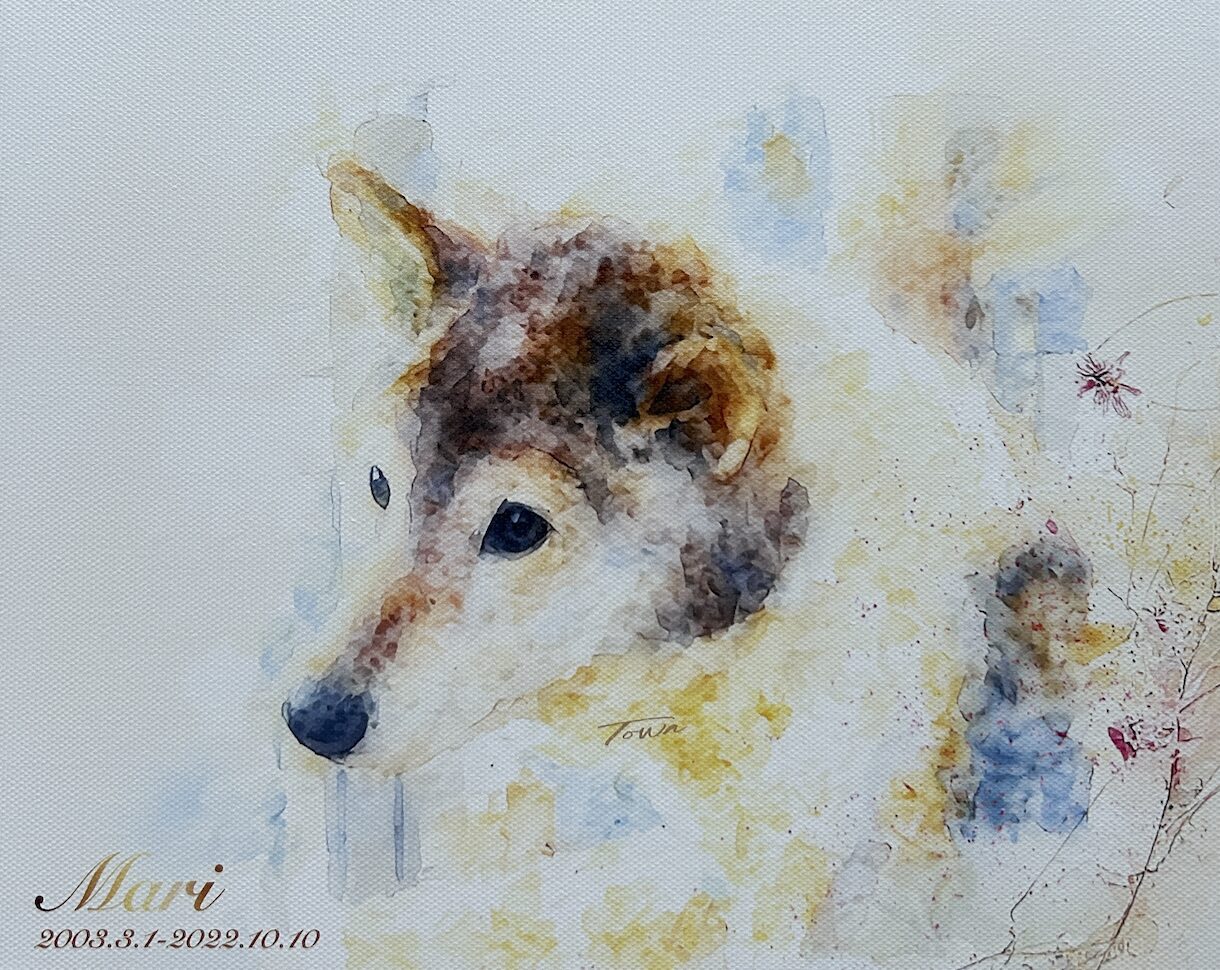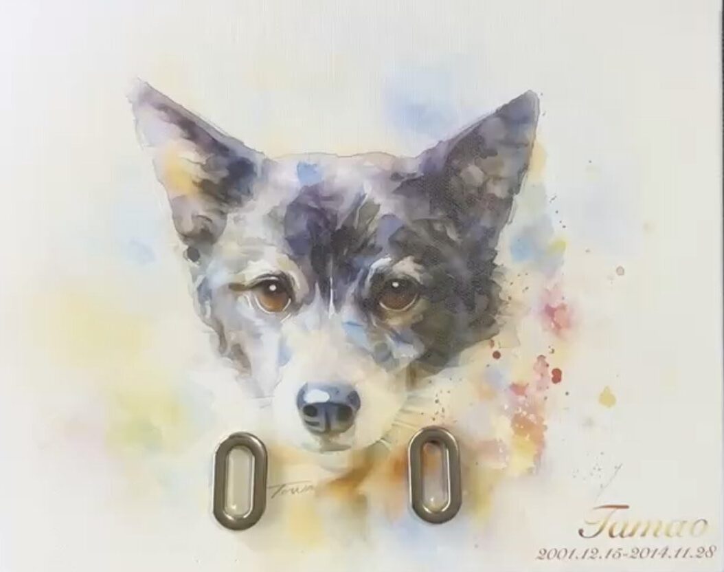 キャンバスに、自分の手で愛犬たちの首輪を通した瞬間、胸の奥にあたたかな灯りがともったようでした。