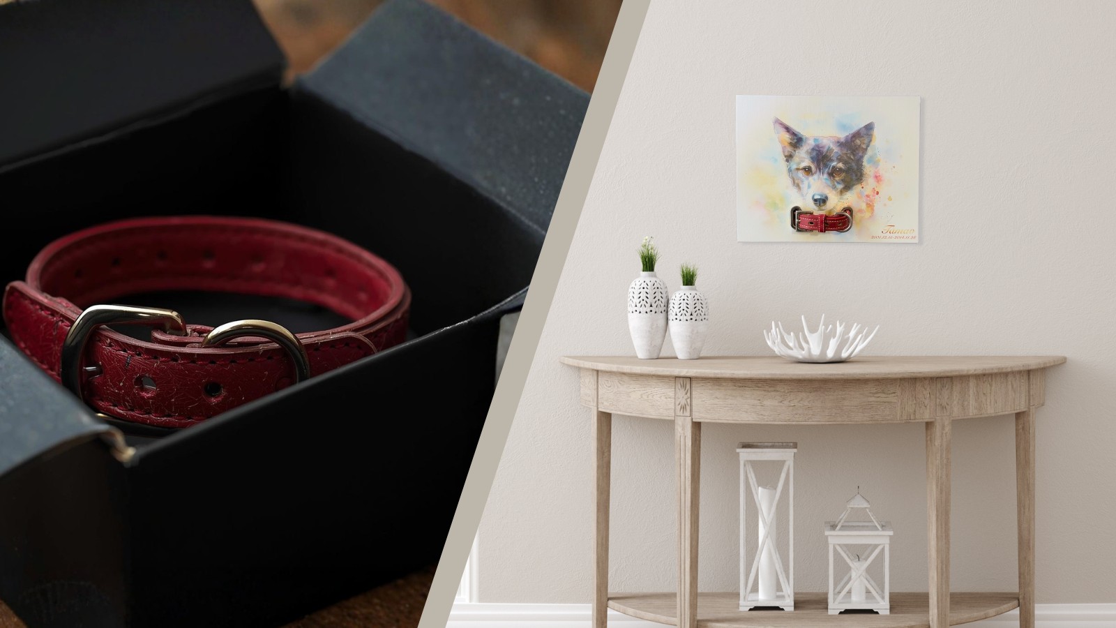 箱から、あの子の首輪を取り出してください。あなたの手で、キャンバスに首輪を通す。その瞬間、あの子の「居場所」が完成します。